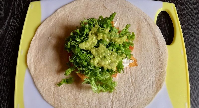 Queso parmesano - Empieza a cerrar la tortilla, doblando cada extremo hasta que los ingredientes queden completamente cubiertos.